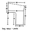 Prasujemy tył i przód przez wilgotne płótno. Zszywamy boczne szwy. Przyszywamy górą elastyczną taśmę. U dołu podwijamy obręb 3 cm szerokości.