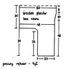 Narzucamy 62 oczka na druty nr 2 1/2 i przerabiamy l cm na wysokość ściągaczem. Zmieniamy druty na nr 3 i przerabiamy ściągaczem w pasy. Na wysokości 5 cm dodajemy z każdego boku co 2 1/2 cm 14 razy po l oczku. Na wysokości 45 cm, na wyrobienie główki rękawa, ujmujemy z każdego boku co drugi rząd: 1 raz 3 oczka, 2 razy po