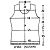 Narzucamy 125 oczek kolorem miodowym na druty nr 2 1/2 i przerabiamy ściągaczem l cm na wysokość. Zmieniamy druty na nr 3 i przerabiamy dalej ściegiem w pasy. Na wysokości 11 cm ujmujemy z obu boków co 2 1/2 cm 6 razy po l oczku. Na wysokości 30 cm dodajemy z każdego boku co 2 i 3/4 cm 6 razy po l oczku. Na wysokości 47 cm zakańczamy na pachy co 2 rząd: l raz 3 oczka, 2 razy po 2 oczka, 5 razy po l oczku. Na wysokości 67 cm zakańczamy z obu boków w sześciu razach po 5 oczek (po 30 oczek z każdego boku). Pozostałe na drutach oczka zakańczamy naraz.